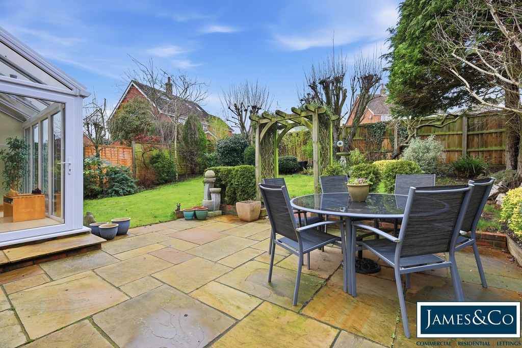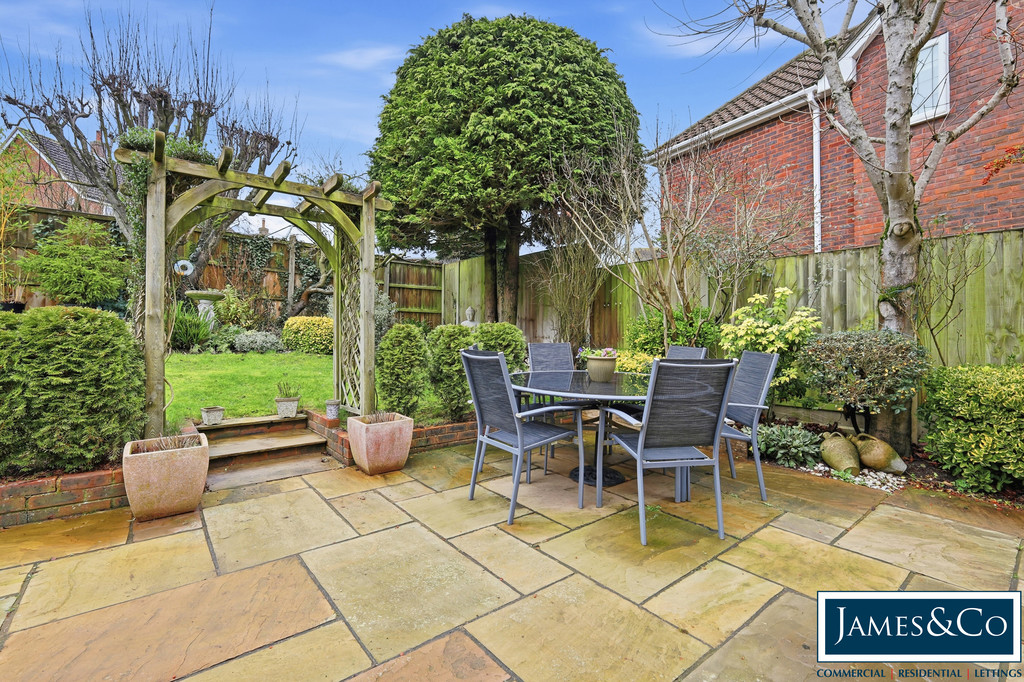 OUTSIDE Externally, the property enjoys a private rear garden with patio seating area, while to the front there is ample driveway parking leading to the garage.