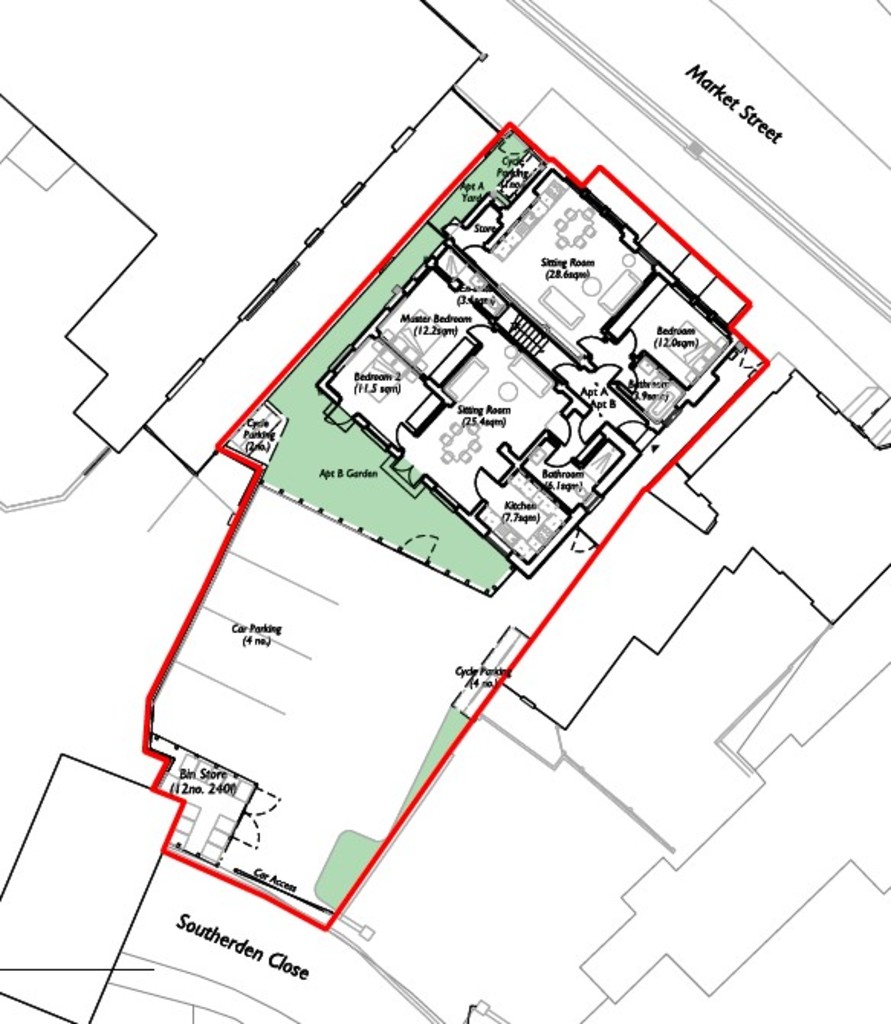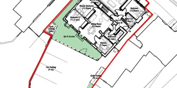 Flat B – Two bedrooms the master with en – suite, separate kitchen, sitting room and bathroom together private garden area. This will be a super Gounod floor apartment. Parking. Approx 73 sq m